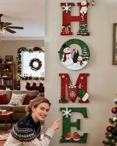 This is more than just a simple sign; it is a work of art. Each letter features unique, three dimensional festive scenes, from a cozy snowman to a warm mug of cocoa.